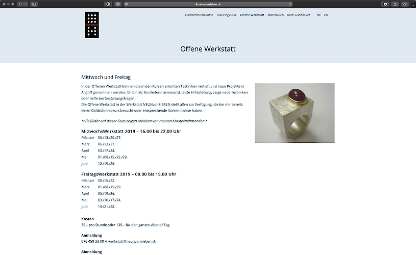 Migration der Kurswebseite von Ruth Gundacker, Goldschmiedin und Objektbauerin, mit ProcessWire als CMS