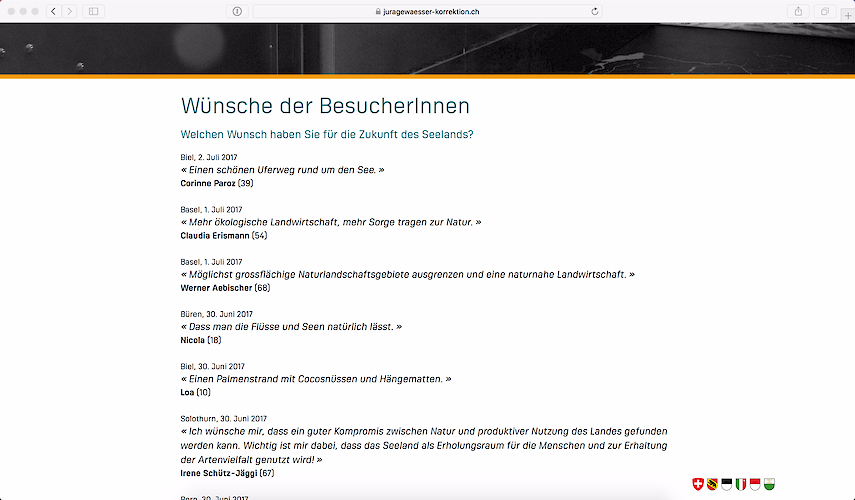 Webauftritt für die Wanderausstellung "Pegelstand" zum Jubiläum "150 Jahre Juragewässer Korrektion".